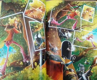 A arte é lindíssima, parece uma animação e o enquadramento é todo diferenciado e temos a sensação que as imagens pulam da página, assim como, o próprio louco que pula de história em história.