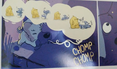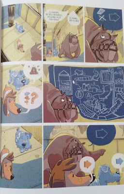 A arte é muito linda e colorida, o colorido combinou muito com o estilo do desenho e a história e uma das coisas mais legais é a escolha dos autores para representar a fala dos cachorros, uma vez, que os mesmos não falam eles utilizaram a representação gráfica para demonstrar.