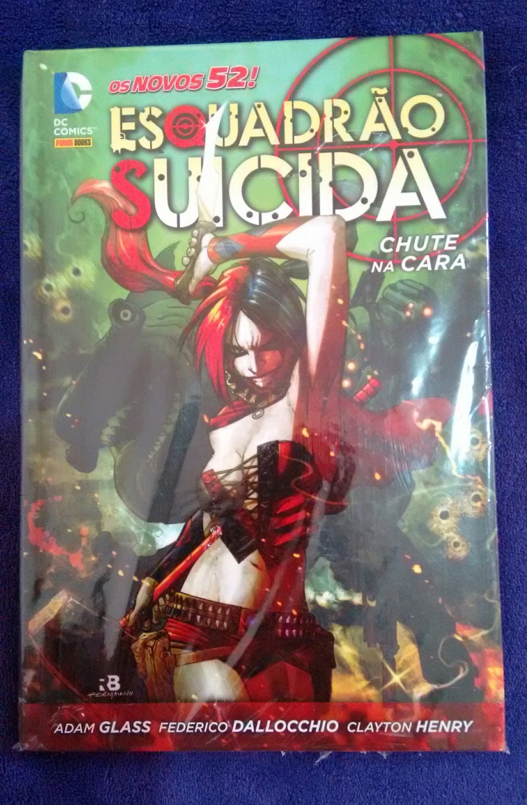 3 - Esquadrão suicida - Chute na cara (Novos 52) - Glass, Dallocchio & Henry (DC/Panini): Esse é um encadernado que compila os volumes 1 - 7 do esquadrão suicida dos Novos 52 e nele vamos ver um pouco da origem do esquadrão na versão novos 52, mostrando como os principais membros foram presos e acompanhar a primeira missão do esquadrão e ele acaba de uma forma que dá bastante vontade de continuar lendo, e esse encadernado acaba se focando bastante na Arlequina. ★★★☆☆