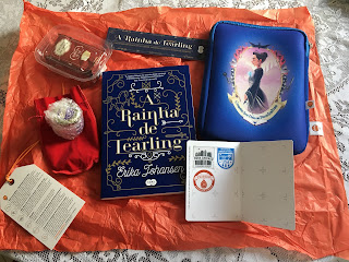 9 - A rainha de Tearling - Erika Johansen (Suma de Letras): Esses foram os itens da caixinha do turista literário de fevereiro, olha essa capinha para levar livros que coisa mais linda do mundo. O livro é um lançamento da Suma de Letras (nem sabia que Suma editava esse estilo de livros) é o primeiro livro de uma triologia (mais uma serie não... sniff) de fantasia YA. Uma leitura muito interessante e divertida com uma personalidade muito forte. Comentário.